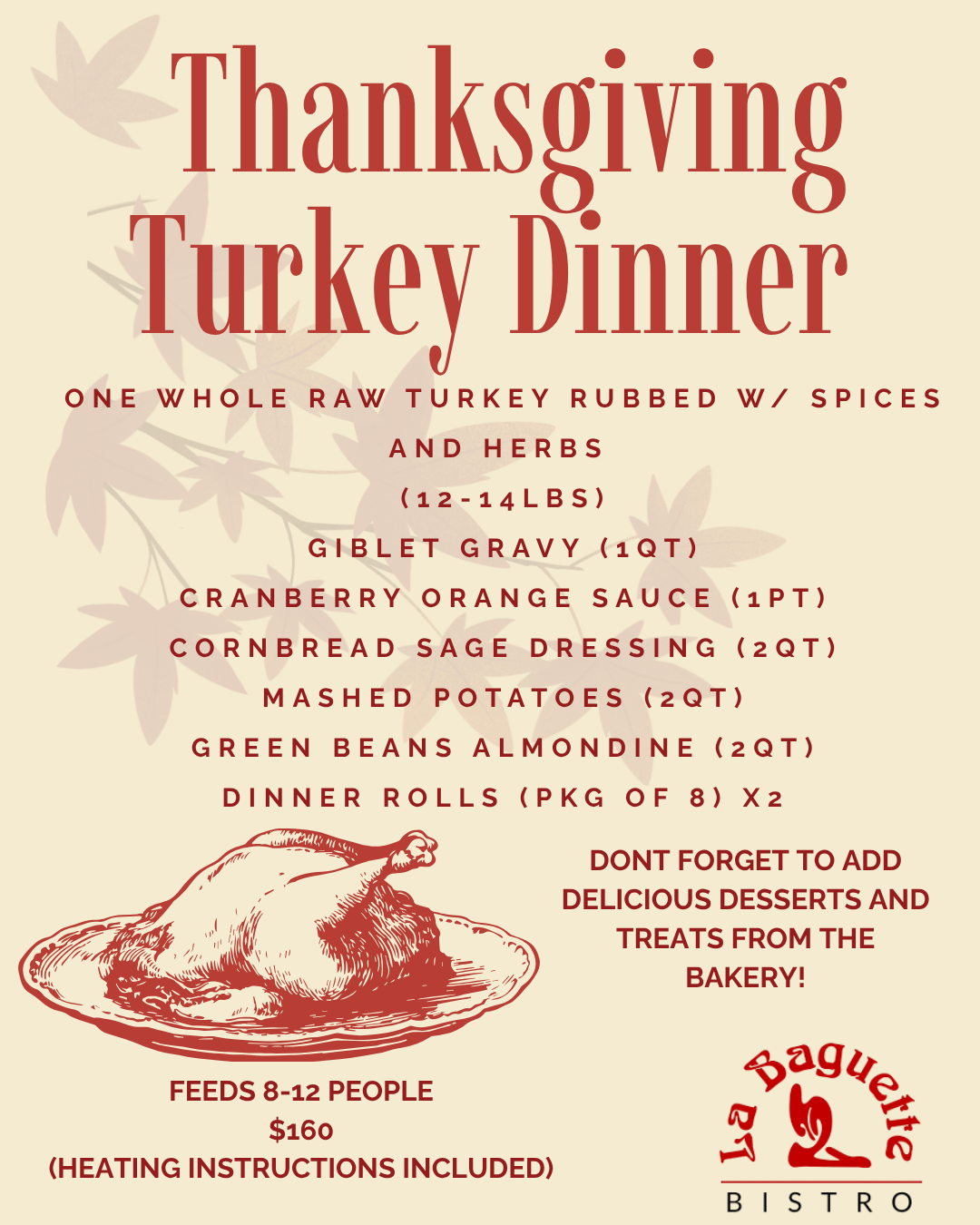 Secure your place in our warmly lit dining room, surrounded by fine art and the aroma of freshly baked pastries. Whether for a romantic dinner, family celebration, or business lunch, every reservation at La Baguette Bistro promises an unforgettable experience.